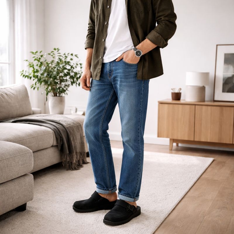 Birkenstock Boston til mænd fungerer bedst, når du styler den med rigtige proportioner: lidt mere luft i bukserne, rolige farver og enten workwear-teksturer eller minimalistiske basics. Og hvis du vil gøre det nemt for dig selv: vælg sort som baseline og byg outfits omkring den.